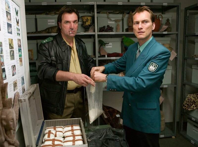 Pik beobachtet zufällig in der Flughafentiefgarage, wie Kowatsch (Andreas Hoppe, links) und Pöhl (Herbert Schäfer) Drogen stehlen.