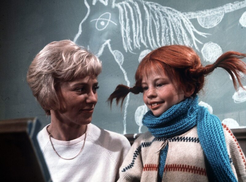 4. Pippi (Inger Nilsson, re.) findet die Lehrerin (Anne-Marie Gyllenspetz) sehr nett und beschließt, eine Weile in der Schule zu bleiben.Bild: © ZDF/Taurus