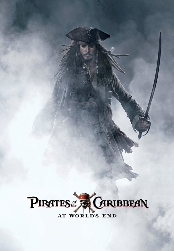 Pirates of the Caribbean - Am Ende der Welt - Plakatmotiv: Ein düsterer Schatten legt sich über die sieben Weltmeere und droht der Ära der Piraterie ein Ende zu bereiten. Ein Verräter hat das der Ruder der "Flying Dutchman" an sich gerissen und segelt nun brandschatzend durch die Meere und verbreitet Tod und Verderben. Glücklicherweise gibt es den chaotischen, aber genialen Piraten-Kapitän Jack Sparrow (Johnny Depp) ...