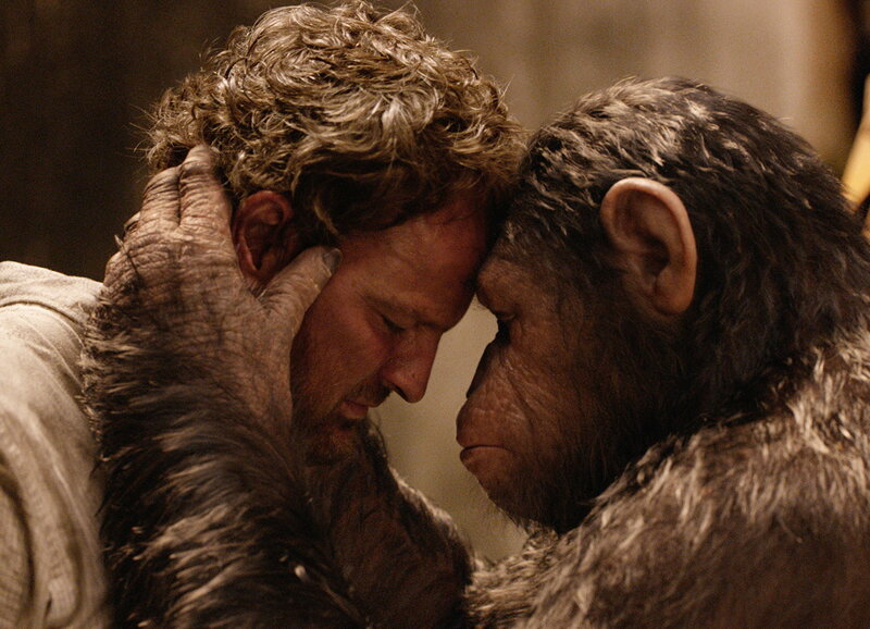 Kaum wieder genesen, verabschiedet sich Caesar (Andy Serkis, r.) liebevoll von seinem Retter Malcolm (Jason Clarke, l.), um in die alles entscheidende Schlacht zu gehen - gegen seine eigenen Artgenossen ...Bild: © Twentieth Century Fox Film Corporation