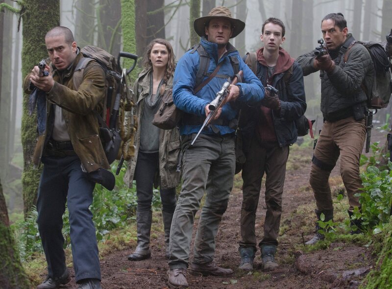 Im Gegensatz zu den Affen benötigen die Menschen für ihr Überleben Wärme und Licht. Dazu wollen (v.l.n.r.) Carver (Kirk Acevedo), Ellie (Keri Russell), Malcolm (Jason Clarke), Alexander (Kodi Smit-McPhee) und Kemp (Enrique Murciano) einen alten Staudamm auf dem Areal, das die Primaten bewohnen, in Betrieb nehmen. Eine riskante Expedition beginnt ...Bild: © 2014 Twentieth Century Fox Film Corporation
