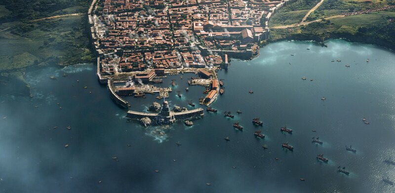 Obwohl sich Pompeii 290 v. Chr. dem römischen Bündnissystem anschließen musste, ging es der Stadt nicht schlecht. Den griechischen und phönizischen Seeleuten diente Pompeii als sicherer Hafen und Umschlagplatz für ihre Waren und die Bauern verfügten nicht zuletzt wegen der früheren Ausbrüche des Vesuvs über sehr fruchtbaren Boden ...Bild: © Constantin Film Verleih GmbH / Caitlin Cronenberg