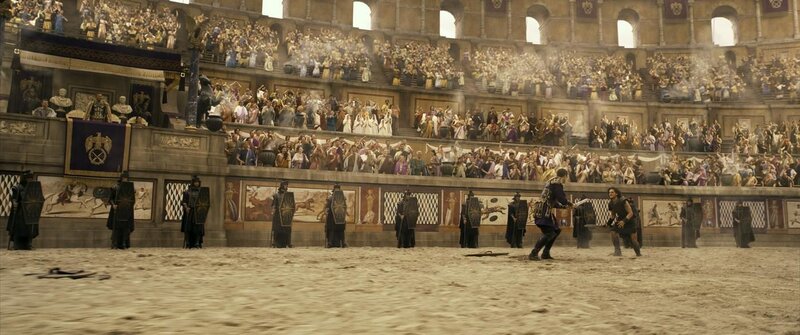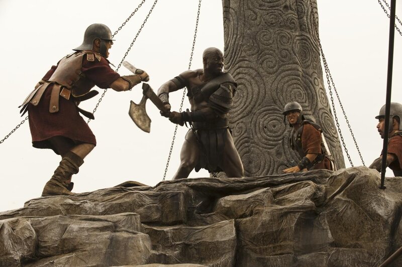 Zu Ehren des Senators soll Corvus' Sieg gegen das Keltenvolk, dem Milo (Kit Harington) angehörte, nachgestellt werden - doch die Sklaven, die die Kelten darstellen sollen, erzielen in der Arena einen fulminanten Sieg gegen die Übermacht der römischen Herausforderer. Für Senator Corvus ein Grund, die Gladiatoren sofort töten zu lassen ...Bild: © Constantin Film Verleih GmbH / Caitlin Cronenberg