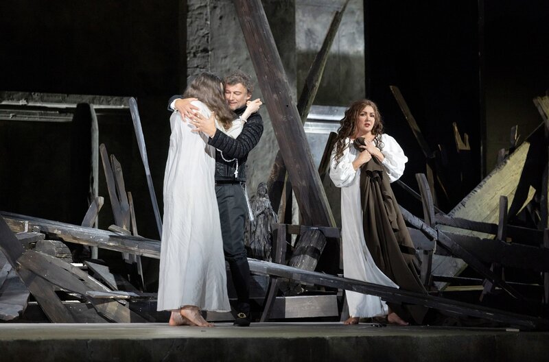 Fünfzig Jahre nach der letzten Aufführung bringt das Teatro San Carlo in Neapel die "Gioconda" mit Anna Netrebko (re.) in der Titelrolle auf die Bühne. Jonas Kaufmann (Mi.) als Enzo Grimaldo, der Mann zwischen zwei FrauenBild: © Luciano Romano/Teatro di San Carlo