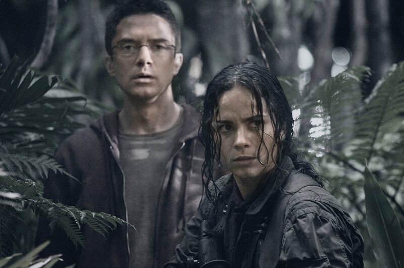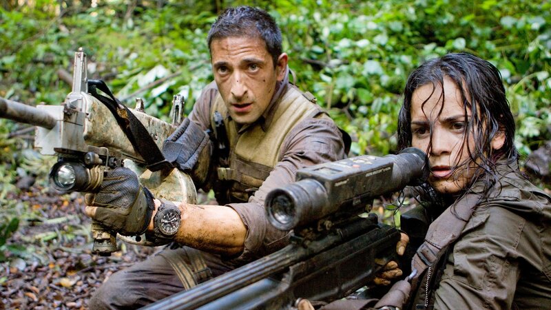 Versuchen angesichts der Überlegenheit des blutrünstigen Gegners weder die Nerven noch den Kopf zu verlieren: Royce (Adrien Brody, l.) und Isabelle (Alice Braga, r.) ...