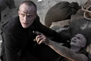 Priest (Paul Bettany l.) bedroht einen Vampir (Josh Wingate r.), um ihm Informationen zu entlocken.Bild: © Screen Gems, Inc. / Sony Pictures Entertainment Inc.