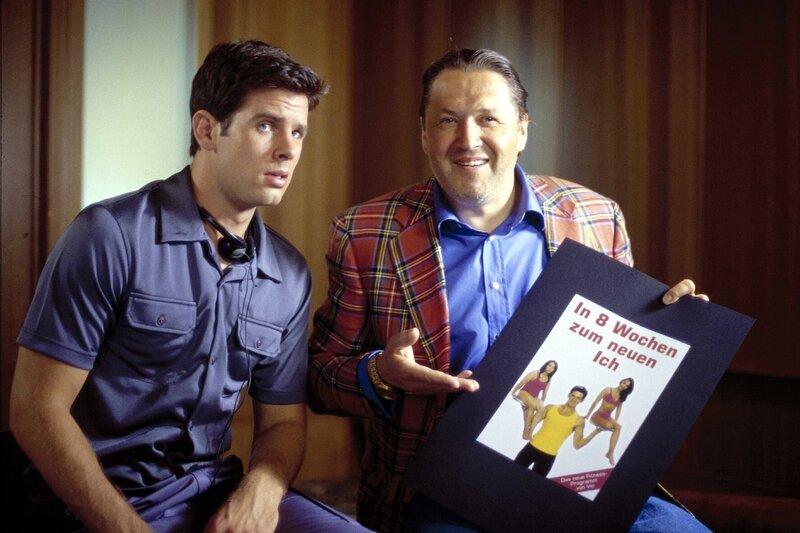 Vic (Steffen Groth, l.) und Manni (Michael Brandner, r.) stellen das neue Buch "In 8 Wochen zum neuen Ich" vor.Bild: © SAT.1