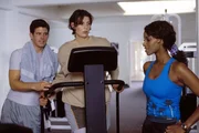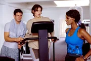 Vic (Steffen Groth, l.) und Yvonne (Liz Baffoe, r.) verfolgen Cleos (Elena Uhlig, M.) Fortschritte mit großem Interesse.Bild: © SAT.1 / Jander