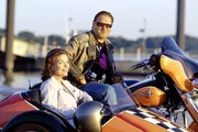 Manni (Michael Brandner, r.) kann die zurückhaltende Linda (Gudrun Landgrebe, l.) zu einem Motorradausflug überreden ...Bild: © Sat.1