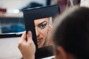 Oleksandr schminkt sich und schlüpft in die Rolle der Drag-Diva Marlen Scandal, bevor er die Bühne betritt.Bild: © Libres