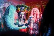 Marlen, Monroe und Aura (v.l.) schminken sich und bereiten sich auf ihren Auftritt vor.Bild: © Libres