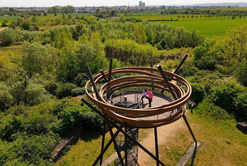 Die Regionalpark-Rundroute das sind 190 km Landschaftserlebnis mit dem Radl durch das Rhein-Main Gebiet. Los geht es am Zusammentreffen von Rhein und Main, bei Kilometer Null, führt die Rund von der Mainspitz, über Weilbach, Hattersheim, Sichtachse große Loh, über Hanau Wilhelmbad, Dreieichenhain, Egelsbach wieder zurück zur Mainspitze. Einmal in großem Bogen rund um die Metropole Frankfurt. Im Vordertaunus beeindrucken weite Blicke in die Wetterau. Durch Streuobstwiesen, Felder und Feuchtbiotope, führt die Strecke zu diversen Kunstwerken und historischen Zeugnissen und immer wieder zu grandiosen Aussichtspunkten. Radler-innen erleben immer wieder neue Perspektiven, tauchen ein in die Kulturlandschaften der Umgebung, in die großen Wälder im Süden Frankfurts, ins Hessische Ried und erleben die Rheinauen. Die Regionalpark-Rundroute ist ein vielfältiges Freizeitangebot durch ein ungeahnt abwechslungsreiches Rhein-Main-Gebiet. Ein gut ausgeschilderter Rundweg bei dem die Wegführung keinesfalls immer nur schön sein soll. Denn den Streckenmachern waren kulturelle Begegnungen und Sensibilisierung für den Naturschutz wichtiger. Durch aktives Erleben werden Natur und Region mehr wertgeschätzt.