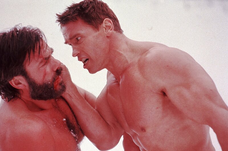 Trouble in the USA: Der russische Militärpolizist Ivan Danko (Arnold Schwarzenegger, r.) hat ein mächtiges Problem mit Nikolai (Sven-Ole Thorsen).Bild: © Tele 5