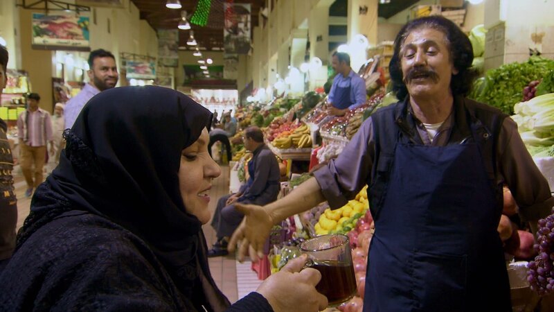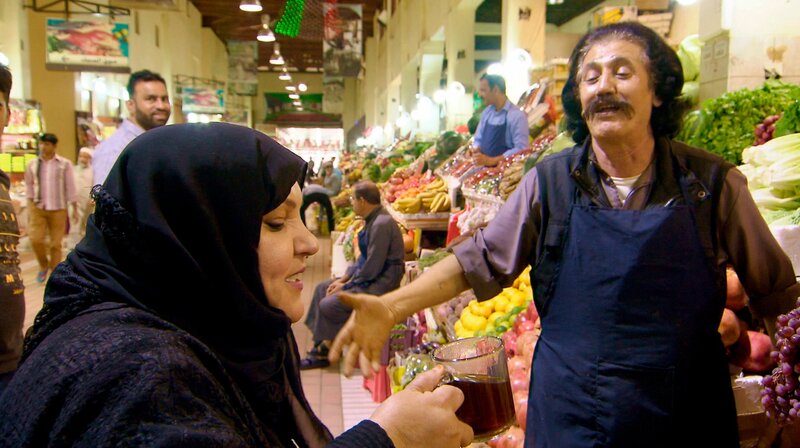 Der Markt von Kuwait-Stadt ist die Lebensader der Metropole. Ghanima al Freh kauft hier jeden Tag für ihr Restaurant ein.Bild: © ARTE/BR/rbb/Stefan Paul