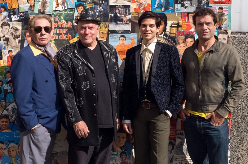In "Rex Gildo - Der letzte Tanz" zeichnet Regisseur Rosa von Praunheim das Leben der deutschen Schlager-Ikone semi-dokumentarisch nach, mit Archivmaterial, Interviews und großartigen, feinfühligen Spielfilmszenen, in denen die Film-Entdeckung Kilian Berger als junger Rex und Kai Schumann als gealterter Ex-Star glänzen. - Kilian Berger (als Rex Gildo) und Ben Becker (als Fred Miekley).; In "Rex Gildo - Der letzte Tanz" zeichnet Regisseur Rosa von Praunheim das Leben der deutschen Schlager-Ikone semi-dokumentarisch nach, mit Archivmaterial, Interviews und großartigen, feinfühligen Spielfilmszenen, in denen die Film-Entdeckung Kilian Berger als junger Rex und Kai Schumann als gealterter Ex-Star glänzen. - Kilian Berger (als Rex Gildo) und Sidsel Hindhede (als Gitte Hænning).; "Rex Gildo - Der letzte Tanz" ist ein Dokudrama für die ARD von Rosa von Praunheim. Es erzählt die tragische Geschichte eines deutschen Schlagerstars im Spiegel des Zeitgeistes der (west)deutschen Nachkriegsjahrzehnte. Vor der Kamera des preisgekrönten Berliner Regisseurs stehen u.a. Kai Schumann (der ältere Rex Gildo), Kilian Berger (der jüngere Rex Gildo) und Ben Becker (Manager Fred Mickley). - Kilian Berger beim Pressetermin zu den Dreharbeiten am 16. August 2021 in Berlin.; "Rex Gildo - Der letzte Tanz" ist ein Dokudrama für die ARD von Rosa von Praunheim. Es erzählt die tragische Geschichte eines deutschen Schlagerstars im Spiegel des Zeitgeistes der (west)deutschen Nachkriegsjahrzehnte. Vor der Kamera des preisgekrönten Berliner Regisseurs stehen u.a. Kai Schumann (der ältere Rex Gildo), Kilian Berger (der jüngere Rex Gildo) und Ben Becker (Manager Fred Miekley). - Ben Becker, Rosa von Praunheim, Kilian Berger und Kai Schumann (von links) beim Pressetermin zu den Dreharbeiten am 16. August 2021 in Berlin.