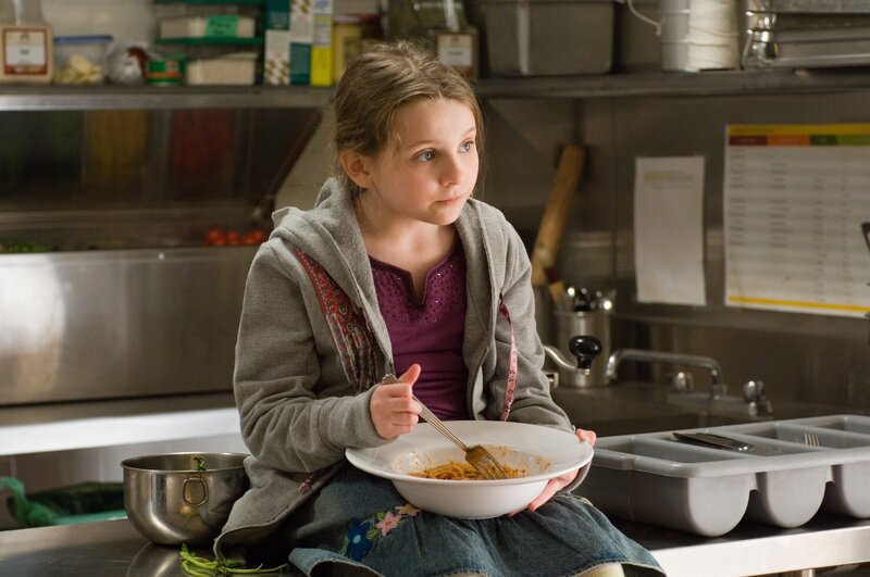 Nick (Aaron Eckhart, l.) findet schnell Zugang zu der kleinen Zoe (Abigail Breslin, r.). Seit dem Tod ihrer Mutter lebt das Mädchen bei ihrer Tante Kate. Doch die Starköchin ist mit dem Kind völlig überfordert ...Bild: © 3+