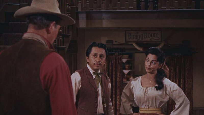 v.li.: Sheriff John T. Chance (John Wayne), Carlos Robante (Pedro Gonzalez Gonzalez), Consuela Robante (Estelita Rodriguez)Bild: © Warner Bros. Entertainment Inc.