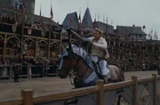Dass keiner im Trio das zur Teilnahme nötige Adelspatent vorweisen kann, ist kein Hindernis, versorgt doch der kurz zuvor zur Truppe gestossene Dichter Geoffrey Chaucer William mit einem Stammbaum, der bis zu Karl dem Kühnen zurückreicht. Fortan reitet der kühne Recke unter seinem neuen Namen Sir Ulrich von Lichtenstein von Sieg zu Sieg. Er gewinnt das Herz von Lady Jocelyn , und alles könnte auf ein prächtiges Happy End hinauslaufen, würde da nicht eines Tages der finstere Turniermatador Ademar, Graf von Anjou , auftauchen und William in der Arena auf Leben und Tod herausfordern.