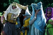 Um von den schurkischen Männern des Sheriffs nicht erkannt zu werden, verkleiden sich Robin (Cary Elwes, 2.v.l.) und seine Männer (Eric Allan Kramer, l., Matthew Porretta, 3.v.r., David Chappelle, 2.v.r., Mark Blankfield, r.). Doch nur, weil sie Strumpfhosen und Frauenkleider tragen, sind sie noch lange keine Tunten - oder?Bild: © Twentieth Century Fox Film Corporation