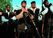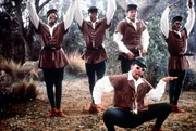 Robins Helden in Strumpfhosen kämpfen nicht nur für die Armen und führen einen flinken Schwertarm, sie schwingen auch das Tanzbein. Außerdem trägt er mit seiner internationalen Männertruppe auch noch zur Völkerverständigung im England des 12. Jahrhunderts bei.Bild: © Kabel Eins
