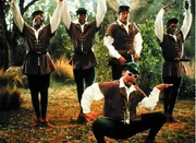 Robins Helden in Strumpfhosen kämpfen nicht nur für die Armen und führen einen flinken Schwertarm, sie schwingen auch das Tanzbein. Außerdem trägt er mit seiner internationalen Männertruppe auch noch zur Völkerverständigung im England des 12. Jahrhunderts bei.Bild: © ProSieben Media AG