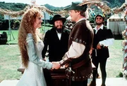 Robin Hood (Cary Elwes, M.) und seine geliebte Marian (Amy Yasbeck, r.) heiraten.Bild: © Kabel Eins