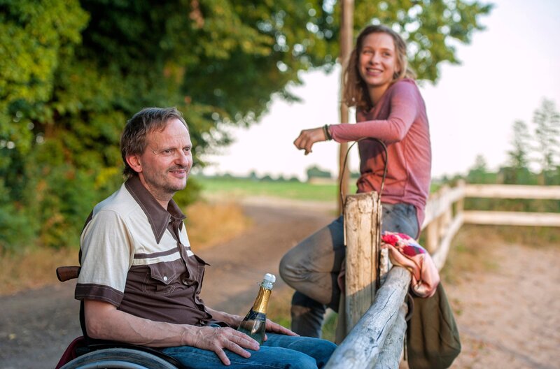 ARD Degeto MEIN WILDES HERZ - ALLES AUF SIEG, am Samstag (30.05.20) um 20:15 Uhr im ERSTEN. Ex-Jockey Steckel (Milan Peschel) glaubt an Jana (Lena Klenke). © ARD Degeto/Neue Schönhauser Filmproduktion, honorarfrei - Verwendung gemäß der AGB im engen inhaltlichen, redaktionellen Zusammenhang mit genannter Degeto-Sendung und bei Nennung "Bild: ARD Degeto/Neue Schönhauser Filmproduktion" (S2+). ARD Degeto/Programmplanung und Presse, Tel: 069/1509-335, degeto-presse@degeto.de
