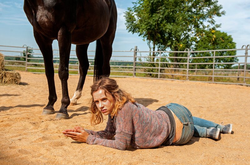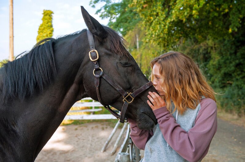 ARD Degeto MEIN WILDES HERZ - ALLES AUF SIEG, am Samstag (30.05.20) um 20:15 Uhr im ERSTEN. Jana (Lena Klenke) lernt das Pferd „Rock My Heart“ kennen. © ARD Degeto/Neue Schönhauser Filmproduktion, honorarfrei - Verwendung gemäß der AGB im engen inhaltlichen, redaktionellen Zusammenhang mit genannter Degeto-Sendung und bei Nennung "Bild: ARD Degeto/Neue Schönhauser Filmproduktion" (S2+). ARD Degeto/Programmplanung und Presse, Tel: 069/1509-335, degeto-presse@degeto.de