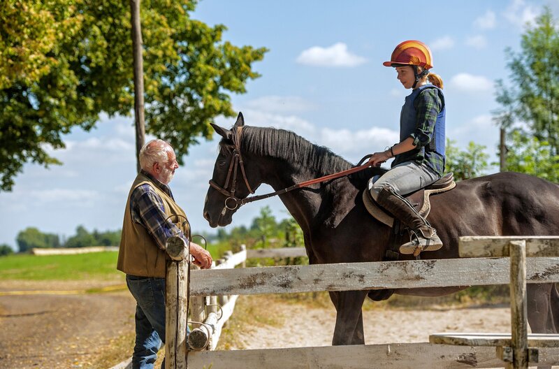 ARD Degeto MEIN WILDES HERZ - ALLES AUF SIEG, am Samstag (30.05.20) um 20:15 Uhr im ERSTEN. Besitzer Paul Brenner (Dieter Hallervorden) staunt nicht schlecht, dass sich sein hochtalentiertes Sorgenkind „Rock“ ausgerechnet von einem Mädchen ohne Reiterfahrung zähmen lässt. © ARD Degeto/Neue Schönhauser Filmproduktion, honorarfrei - Verwendung gemäß der AGB im engen inhaltlichen, redaktionellen Zusammenhang mit genannter Degeto-Sendung und bei Nennung "Bild: ARD Degeto/Neue Schönhauser Filmproduktion" (S2+). ARD Degeto/Programmplanung und Presse, Tel: 069/1509-335, degeto-presse@degeto.de