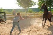 ARD Degeto MEIN WILDES HERZ - ALLES AUF SIEG, am Samstag (30.05.20) um 20:15 Uhr im ERSTEN. Jana (Lena Klenke) arbeitet mit dem wilden Vollbluthengst „Rock My Heart“. © ARD Degeto/Neue Schönhauser Filmproduktion, honorarfrei - Verwendung gemäß der AGB im engen inhaltlichen, redaktionellen Zusammenhang mit genannter Degeto-Sendung und bei Nennung "Bild: ARD Degeto/Neue Schönhauser Filmproduktion" (S2+). ARD Degeto/Programmplanung und Presse, Tel: 069/1509-335, degeto-presse@degeto.de