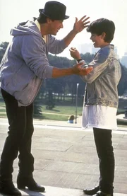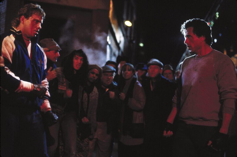 Undank ist der Welt Lohn: Rockys (Sylvester Stallone, r.) ehemaliger Schützling Tommy (Tommy Morrison, l.) fordert den Ex-Champion zum Straßenkampf heraus.Bild: © United Artists