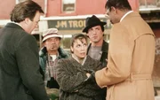 Obwohl er seine Handschuhe an den Nagel gehängt hat, steht Ex-Weltmeister Rocky Balboa (Sylvester Stallone, 2. v. r.) immer noch im öffentlichen Interesse, genauso wie seine Frau Adrian (Talia Shire, M.) und sein Schwager Paulie (Burt Young, 2. v. l.).Bild: © United Artists