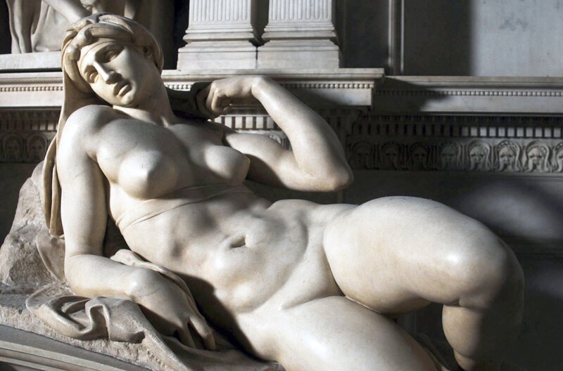 Michelangelos Skulpturen – etwa seine "Morgenröte" auf dem Grab von Lorenzo di Piero de’ Medici – erhalten durch die Materialität des Marmors eine fast lebendige Präsenz.Bild: © Temps noir/Musée du Louvre/Musée Rodin/Renaud Personnaz