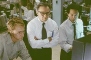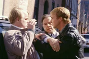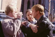 Jack Crawford (Harvey Keitel, M.) versucht zwischen Will Graham (Edward Norton, r.) und dem Reporter Freddy Lounds (Philip Seymour Hoffman, l.) zu schlichten.