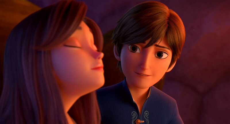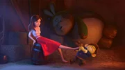 Nachdem Schneewittchen (li.) mit Merlin (re.) über das wahre Ich und die inneren Werte spricht, möchte sie Merlin ihre wahre Gestalt präsentieren. Doch es gelingt den beiden nicht ihr die Zauberschuhe vom Fuß zu ziehen.Bild: © LOCUS Corporation