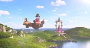Schneewittchen (vo.) und Merlin (hi.) fliegen gemeinsam in die Stadt, um die Suchflyer zu verteilen, von denen Schneewittchen sich erhofft, dass sie sie zu ihrem Vater führen.Bild: © LOCUS Corporation