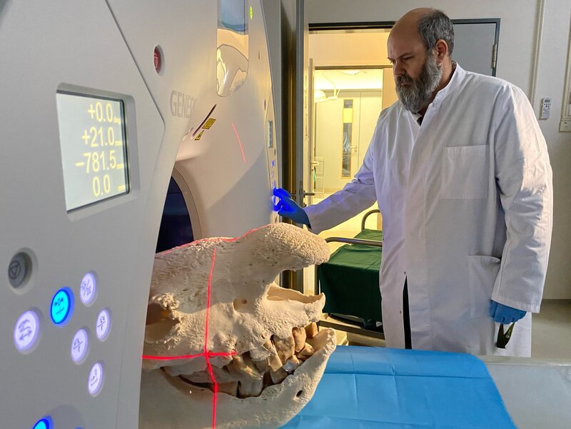 Um wertvolle Gene zu erhalten, werden im Berliner Institut für Zoo- und Wildtierforschung Nashornschädel aus Museen im MRT untersucht.Bild: © ZDF und Herbert Ostwald/autentic