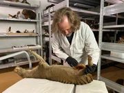 Kevin Rowe lagert im Museums Victoria in Melbourne 32 Exemplare ausgestorbener Beutelwölfe.Bild: © Herbert Ostwald/autentic / ZDF