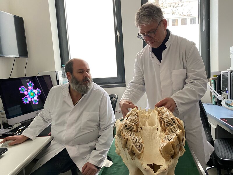 Aus dem Knochenstaub von alten Schädeln gewinnen Forschende des Instituts für Zoo- und Wildtierforschung in Berlin wichtige Genbausteine für gesunde Nashörner.Bild: © ZDF und Herbert Ostwald/autentic