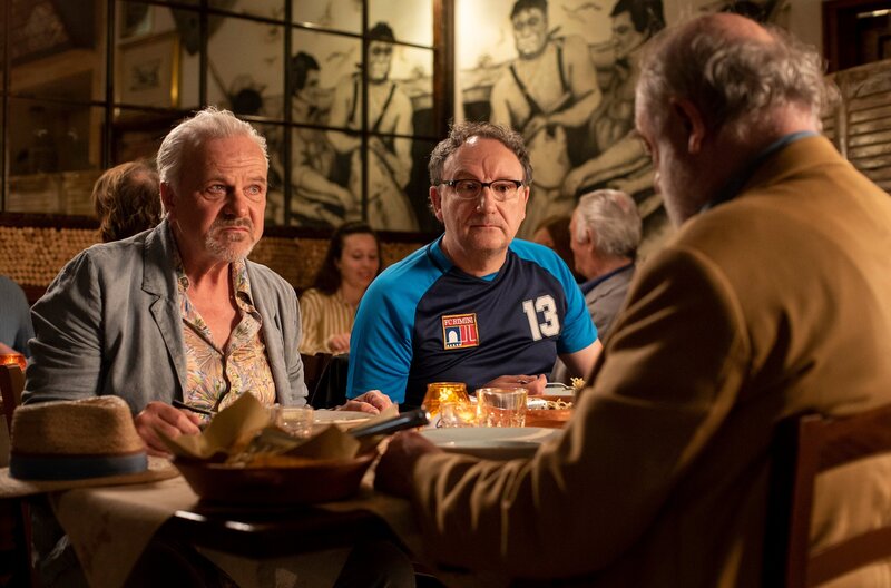 Die drei Freunde Edgar (Bernhard Schütz, li.), Peter (Reiner Bock) und Helmut (Karl Fischer, re.) sind in Rimini auf der Suche nach einem alten Bekannten.