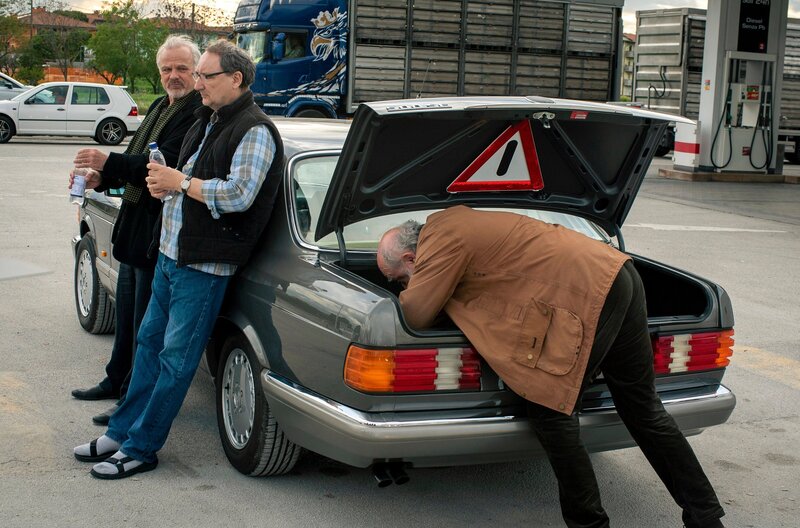 Auf dem Weg nach Rimini: Die drei Freunde Die drei Freunde Helmut (Karl Fischer, li.), Edgar (Bernhard Schütz, Mitte) und Peter (Reiner Bock) reisen nach Rimini.