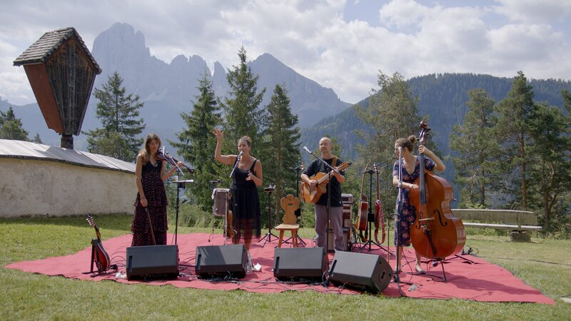 Ganes geben ein Konzert vor der Kulisse der Dolomiten.Bild: © ORF/pre tv