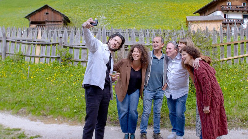 Familie Schuen knipst gemeinsam mit Robert Palfrader ein Selfie.Bild: © ORF/pre tv / ZDF