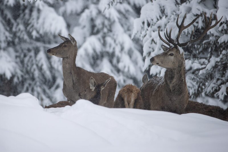 Das Rotwild im Hochwinter. Jede Bewegung trägt nun Ruhe in sich.