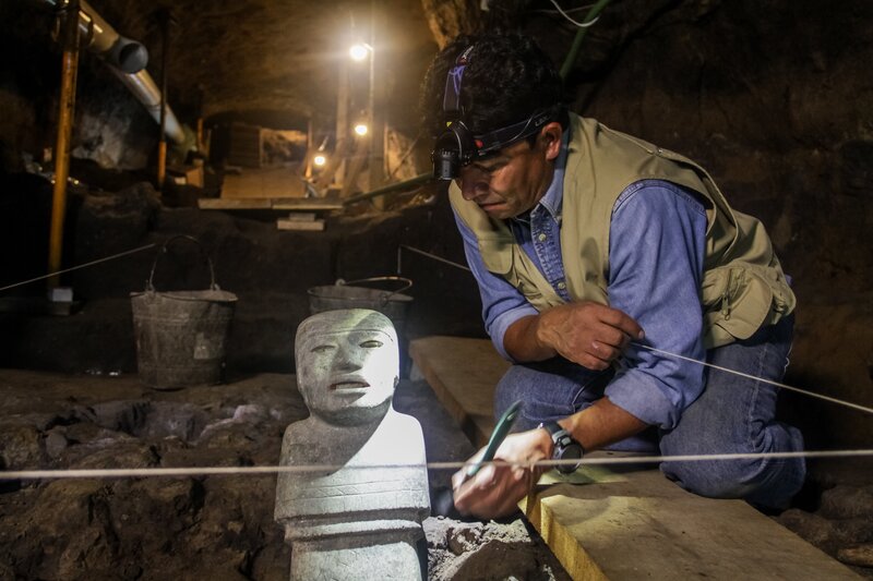 Das Team findet insgesamt vier steinerne Figuren in der kreuzförmigen Endkammer. Sie könnten die Urahnen der Teotihuacános darstellen und als Wächter gedient haben.