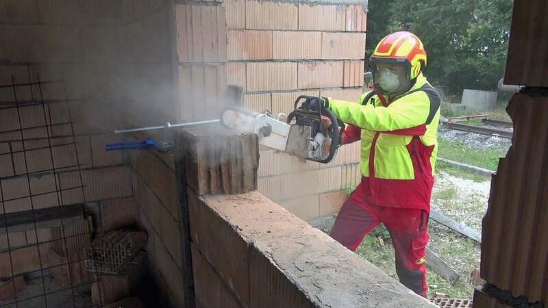 Wer dachte, Motorsägen fände man nur im Wald, der irrt: Längst kommen sie auch auf dem Bau zum Einsatz. Dank der messerscharfen Kette und dem starken Zweitaktmotor stellt auch Stein kein Hindernis für die Maschine dar.