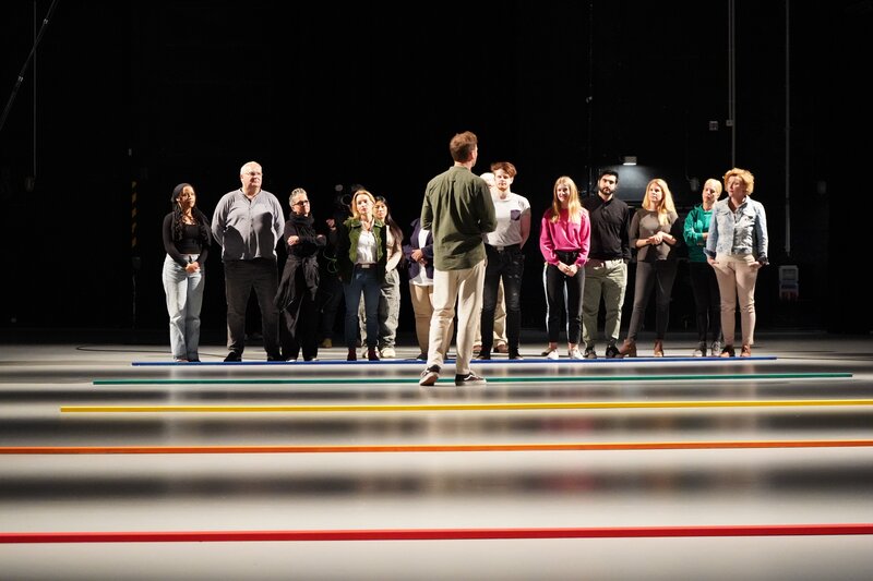 Leon Windscheid (M.) mit den Teilnehmern des Studioexperiments zu dem Thema "Scheitern".Bild: © Tim Marcus Dethlefsen / ZDF