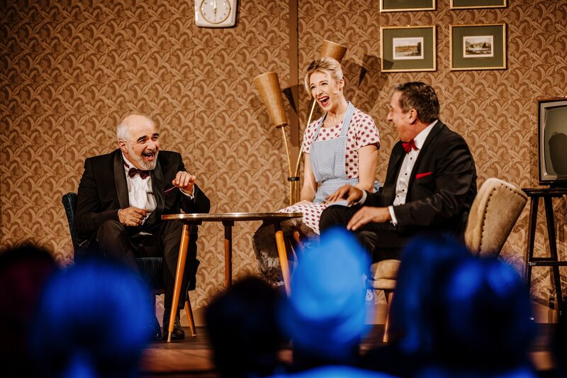 v.li.: Michael Niavarani, Jenny Frankl und Viktor Gernot.Bild: © Hoanzl / ORF / Nadine Studeny