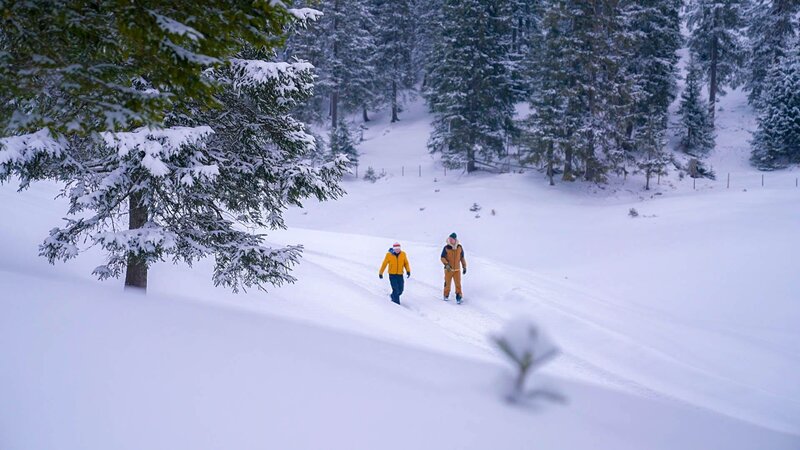 Wandern statt Wedeln. Der Schmidt Max (links) und Felix Neureuther beim Aufstieg zur Esterbergalm.Bild: © BR/André Goerschel