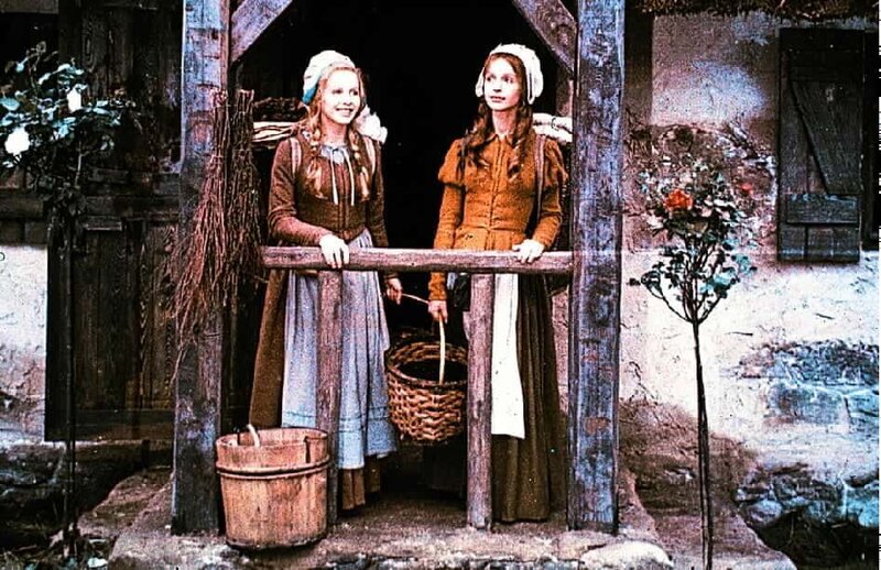 Schneeweißchen (Julie Juristová) und Rosenrot (Katrin Martin) versuchen, einem alten Mann (Hans-Peter Minetti) zu helfen, dessen Bart sich beim Holzfällen verfangen hat. Sie wissen nicht, dass dies der böse Berggeist ist, der die ganze Gegend verunsichert. Weiteres Bildmaterial finden Sie unter www.br-foto.de.